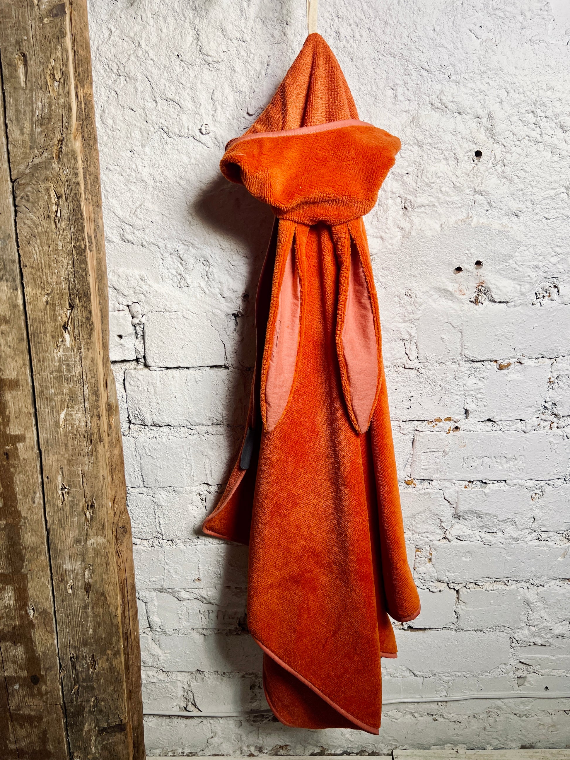 Large children's hooded towel with bunny ears. Great for warming up your little water lover after a bath or swim.