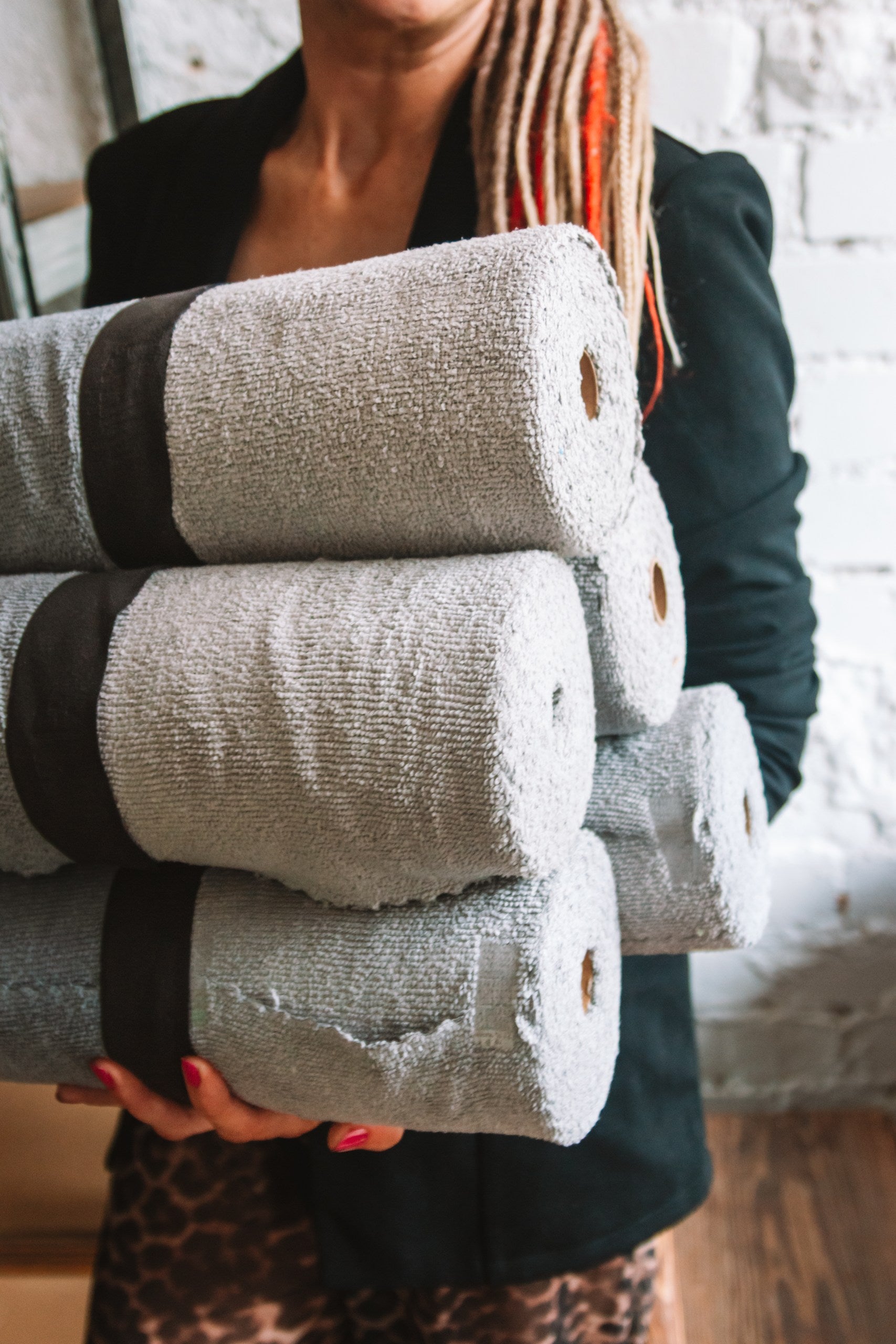 Яунумс! Noplešami microšķiedras dvieļi rulli.